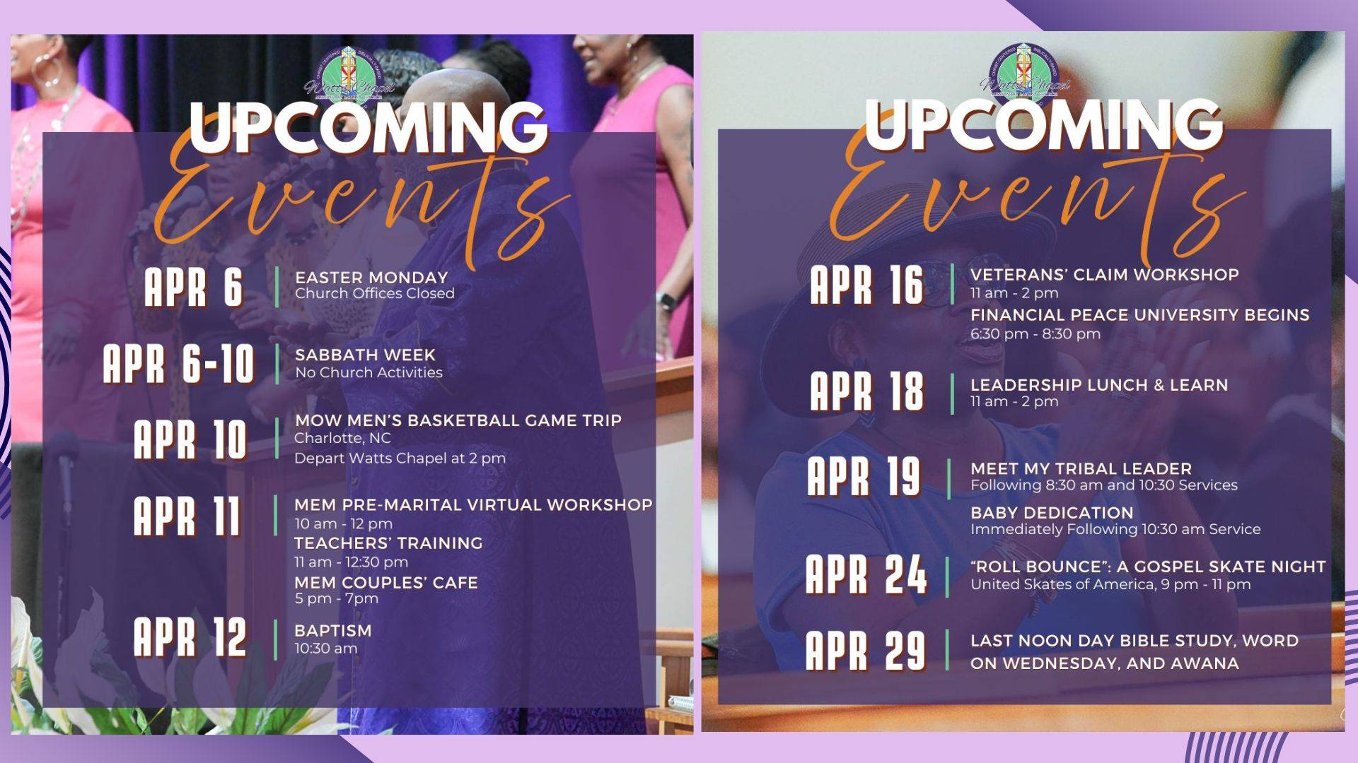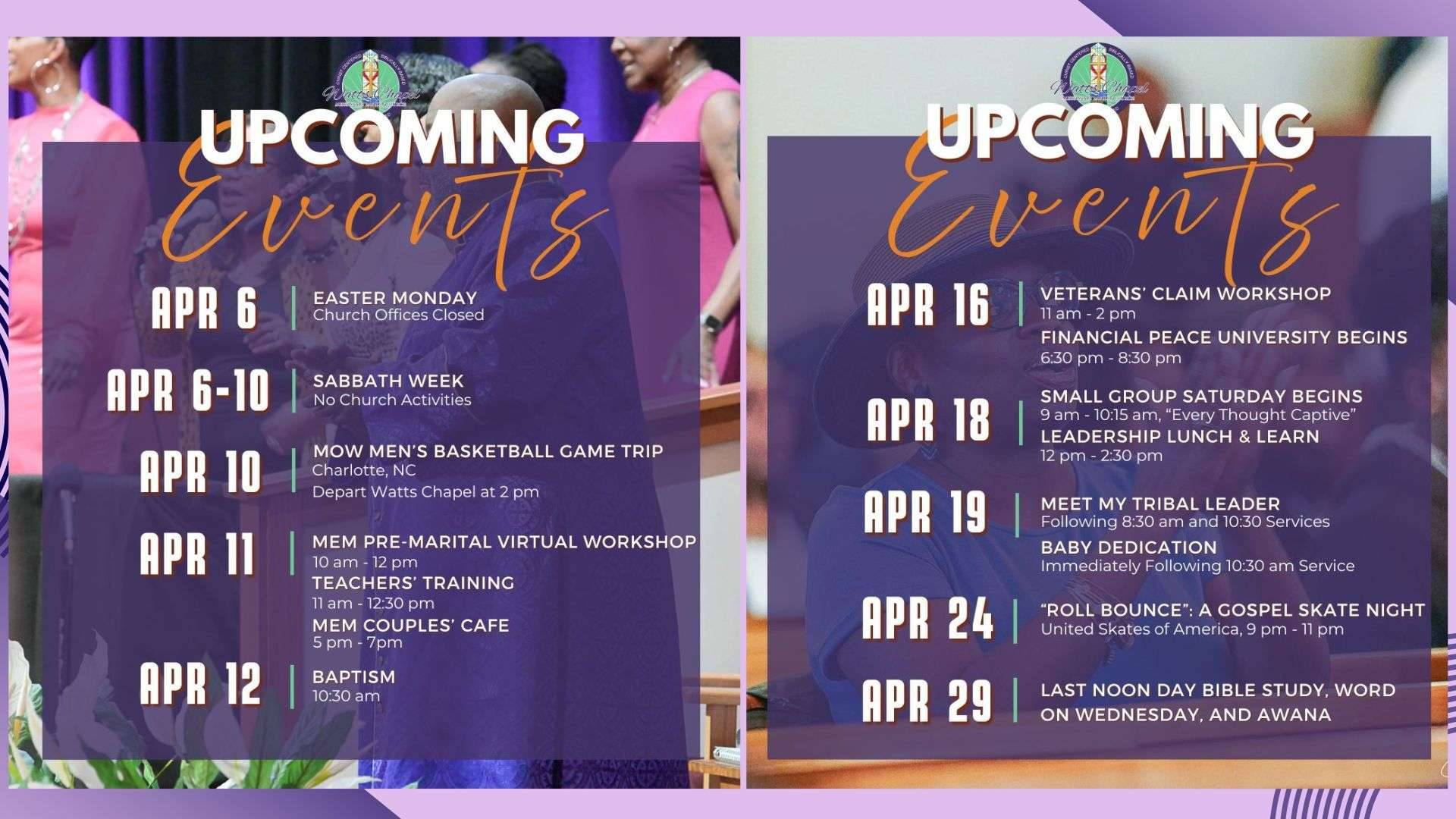 To develop disciples of Jesus Christ who advance the Kingdom of God through worship, evangelism, study, the giving of tithes and offerings, and service.